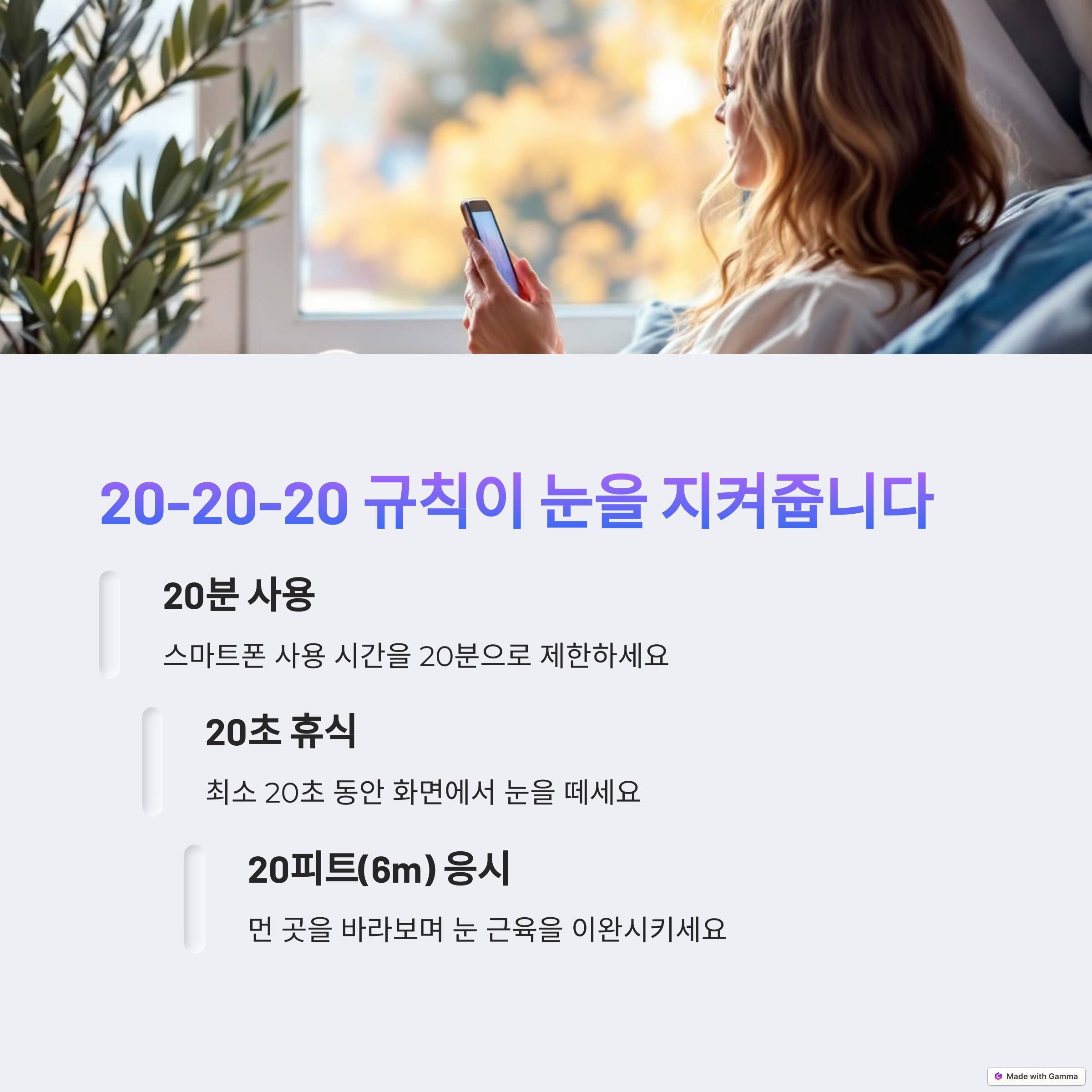 이 글이 도움이 되셨다면 주변에도 널리 공유해 주세요. 더 많은 사람들이 스마트폰 사용 습관을 개선하여 눈 건강을 지킬 수 있도록 함께 노력해봅시다.