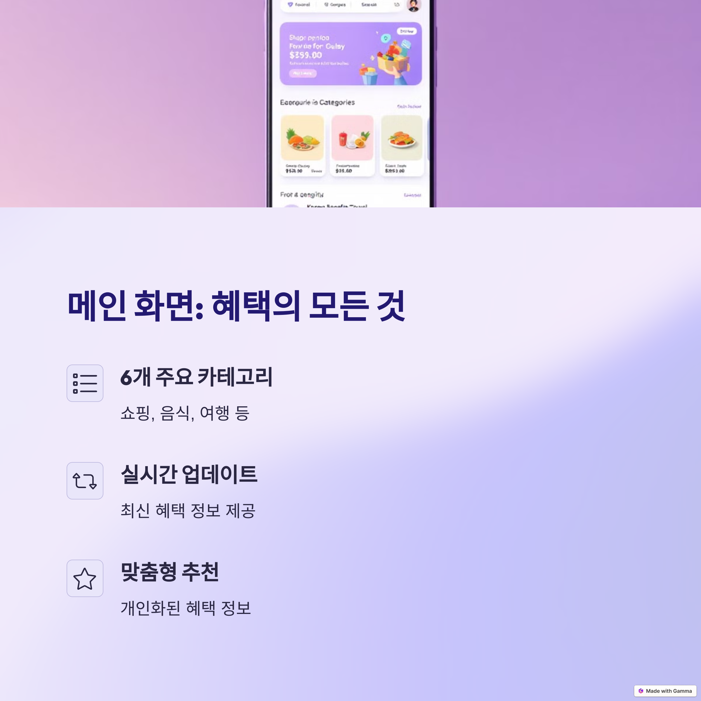 마지막으로 맞춤형 혜택을 제공합니다. 사용자가 자주 이용하는 브랜드나 카테고리에 맞춰 제공되는 혜택을 개인화하여, 내게 필요한 혜택만 빠르게 확인하고 스마트한 소비를 할 수 있습니다.