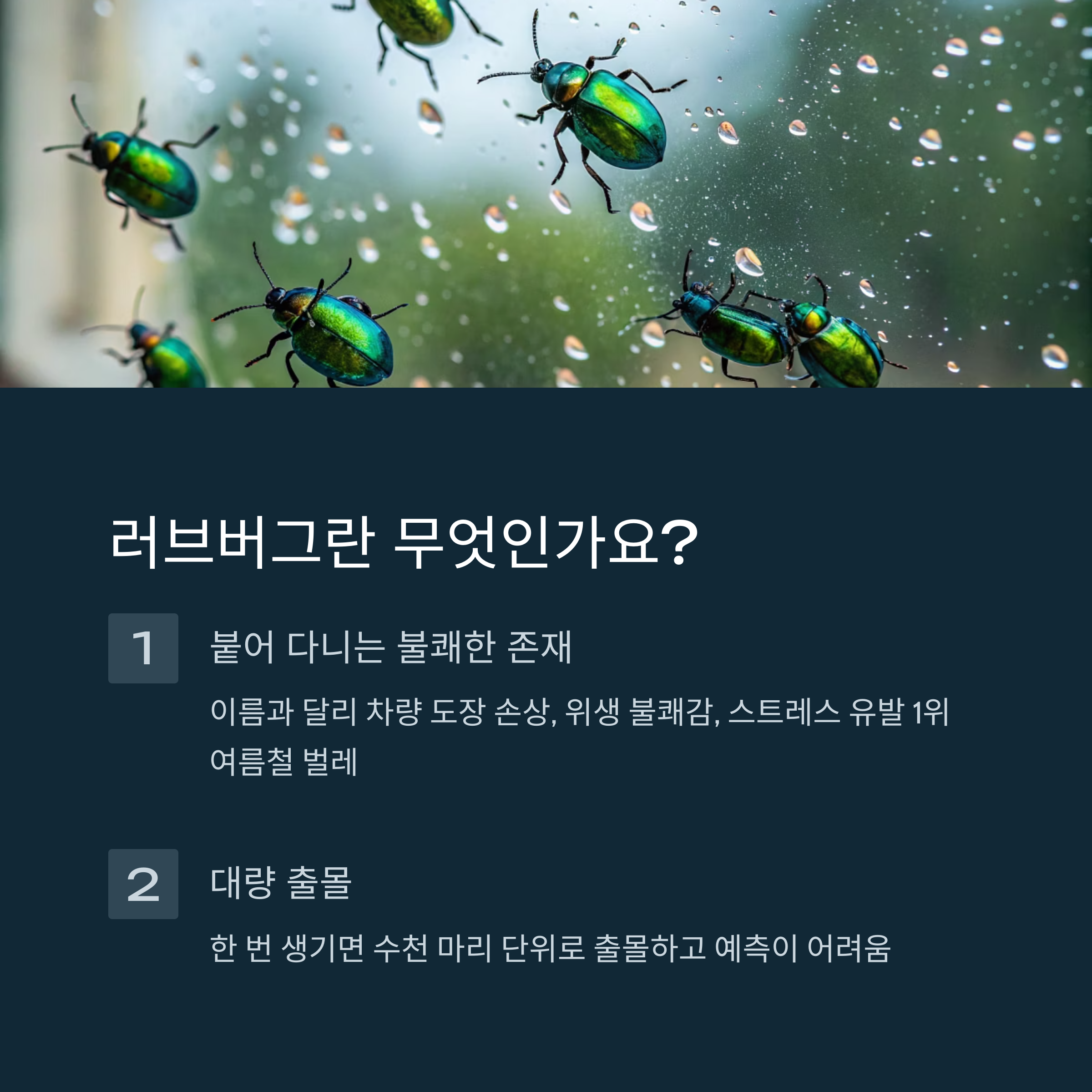 강아지랑 산책 나갈 때도, 창문에도, 차 앞유리에도 덕지덕지 붙은 벌레를 보면… 괜히 하루가 지치는 기분이에요.