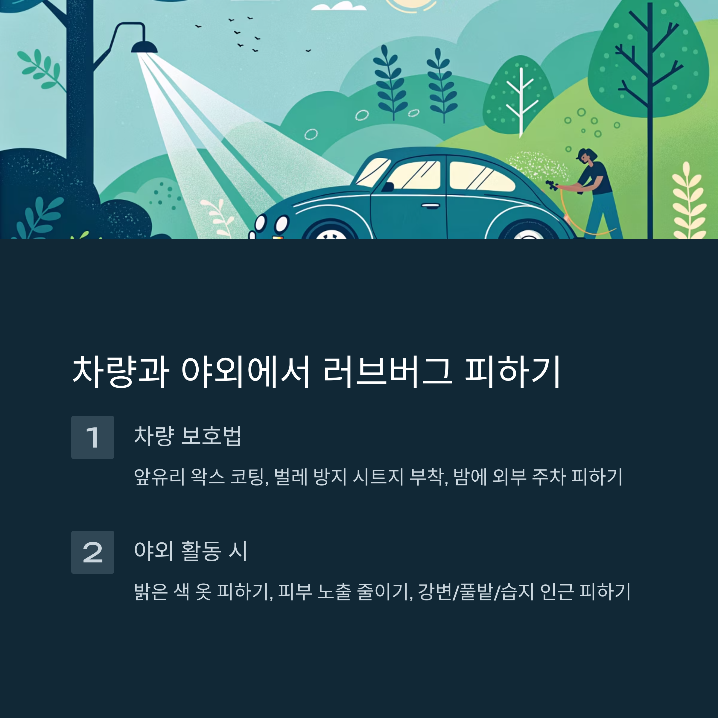 - 앞유리 왁스 코팅 필수: 벌레가 덜 붙고 닦기 쉬움