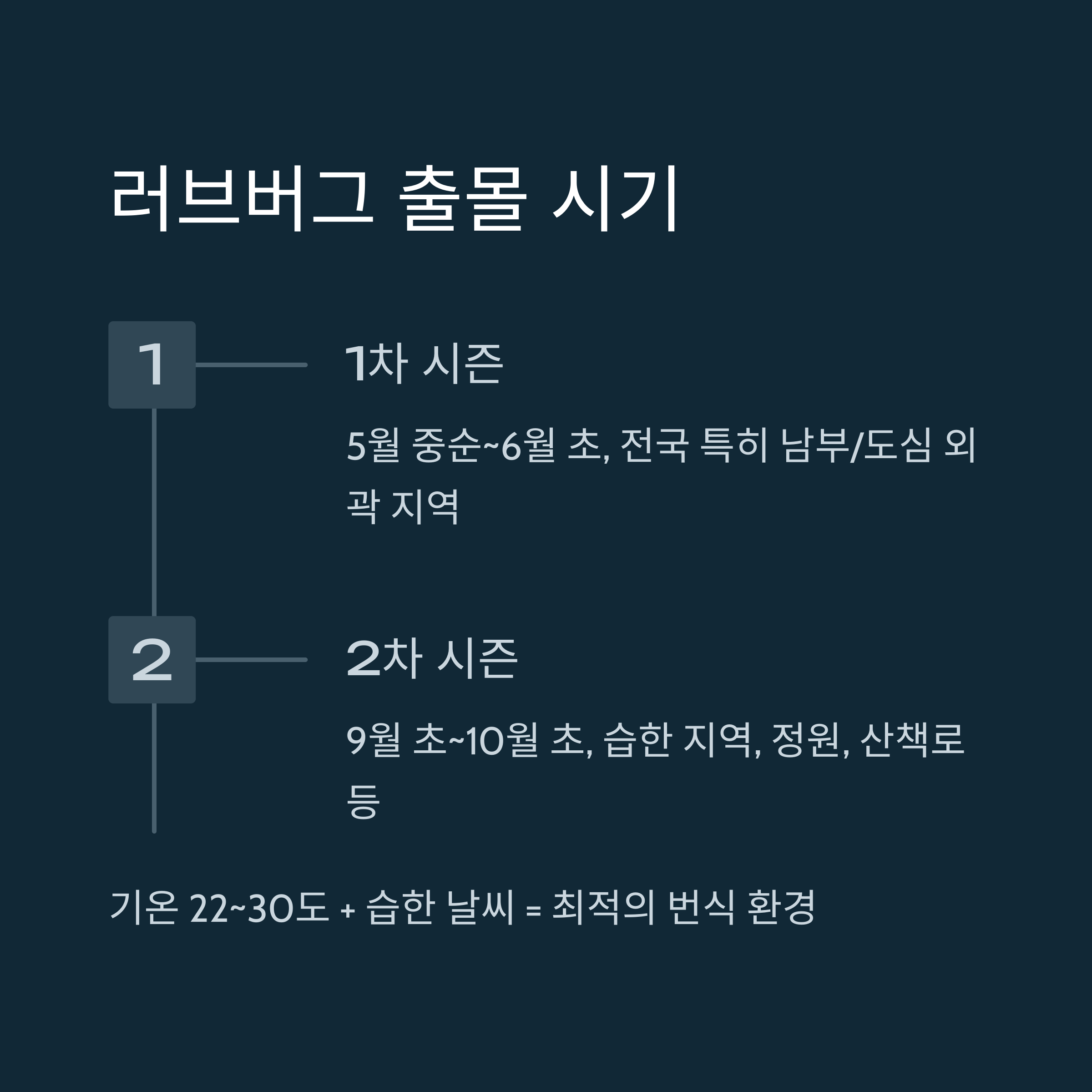 | 1차 | 5월 중순 ~ 6월 초 | 전국, 특히 남부/도심 외곽 |