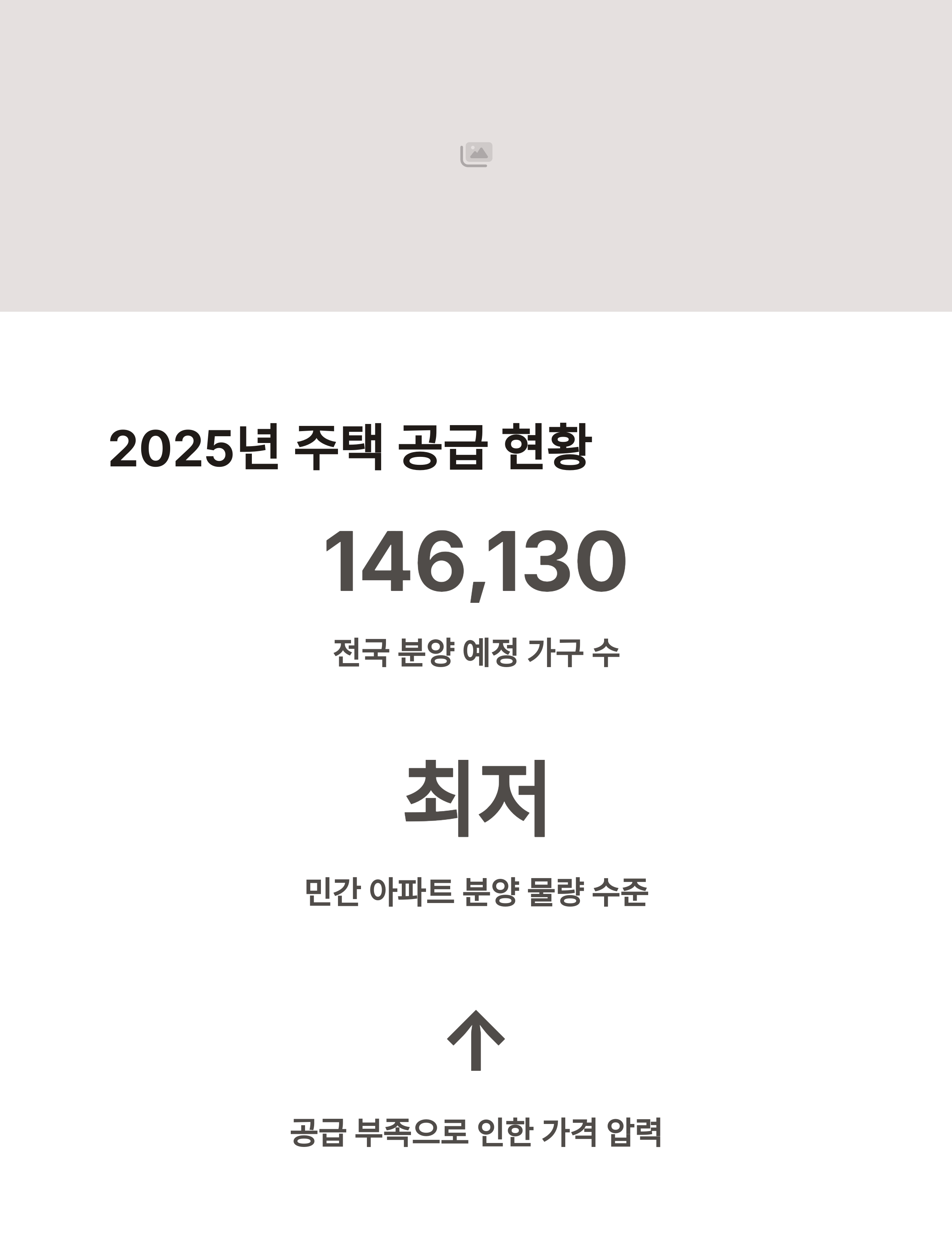 | 기준금리 인하 기대감이 커지고 있습니다. | 신규 분양과 재개발 공급 확대가 예고됩니다. | 거주 목적 매수자는 지금이 기회일 수 있습니다. |