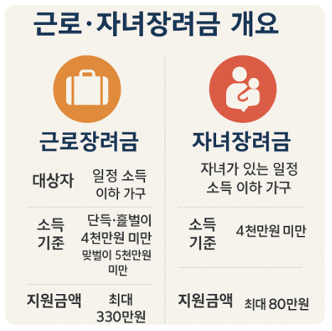 1. 근로·자녀장려금 – 소득이 낮을수록 더 많은 혜택