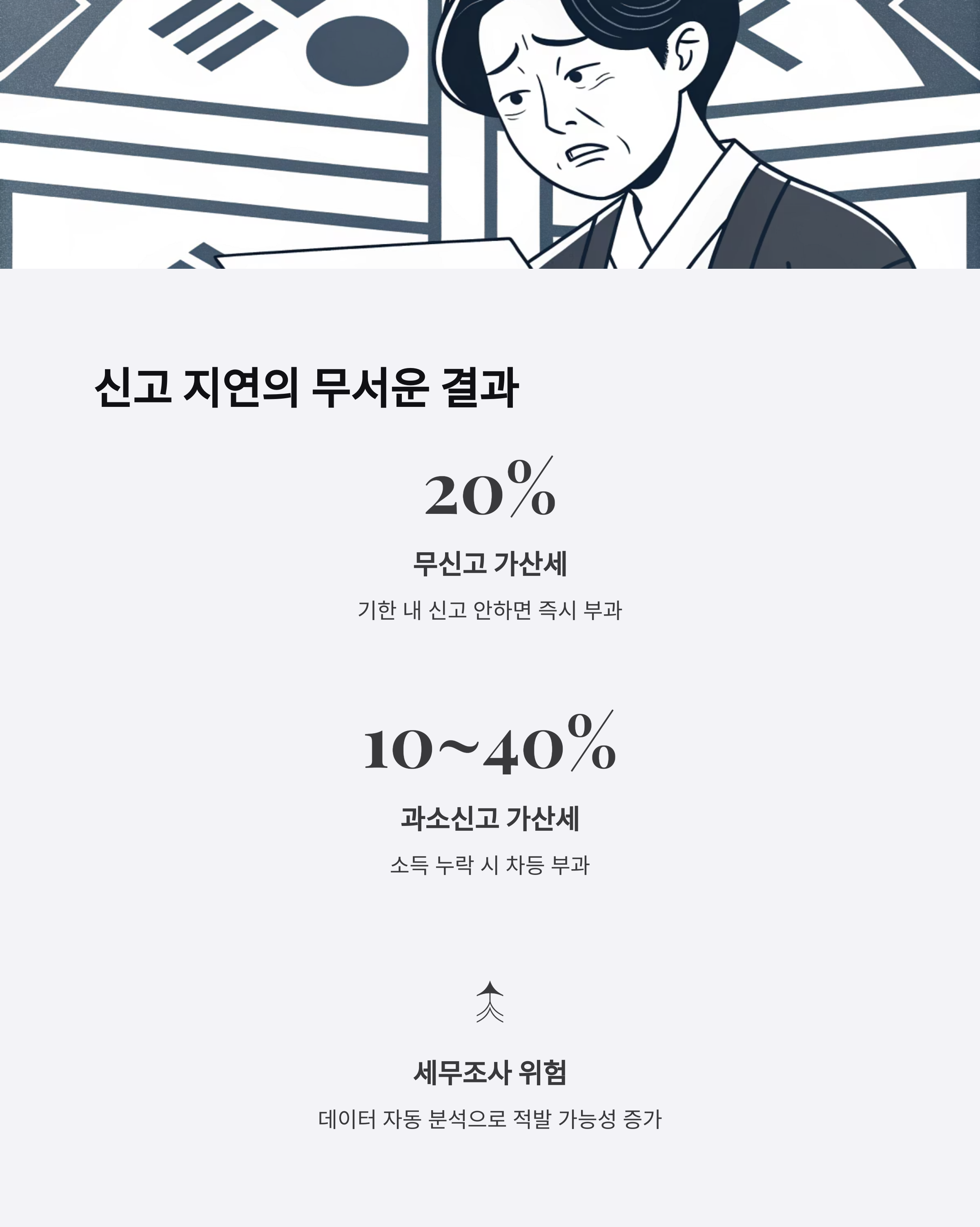 신고 지연 또는 누락 시 다음과 같은 페널티가 부과됩니다.